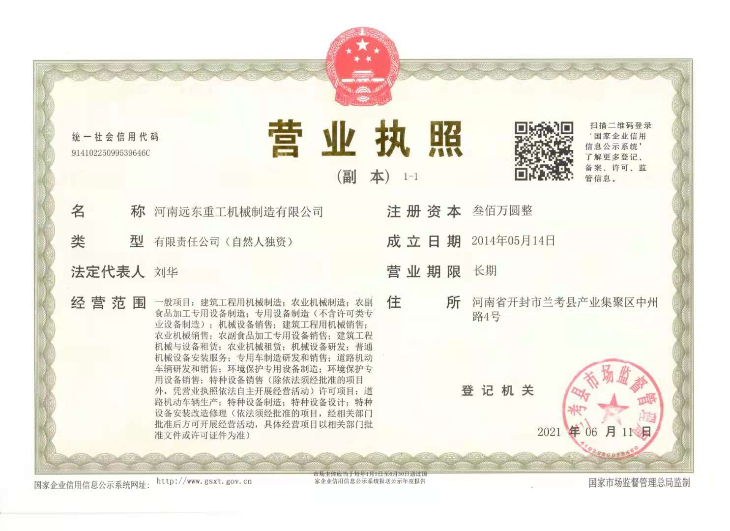 網站備案/許可證號:豫ICP備14016723號-1遠東重工 版權所有 營業執照信息公示
